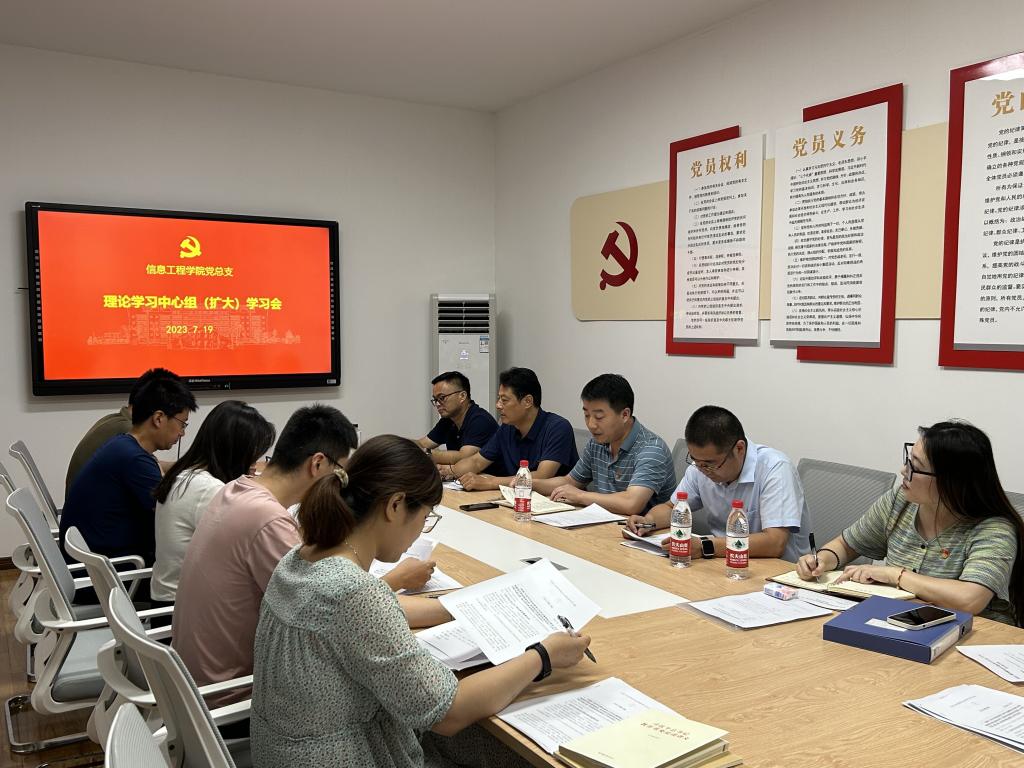 7月19日下午,信息工程学院党总支在G-B406会议室开展中心组(扩大)专题学习会议,党总支委员、党支部书记以及农业物联网系、人工智能系相关负责人参加此次学习。学院党委委员颜志明、畜牧兽医学院党总支副书记赵彬和组织员赵丹巡学旁听会议。