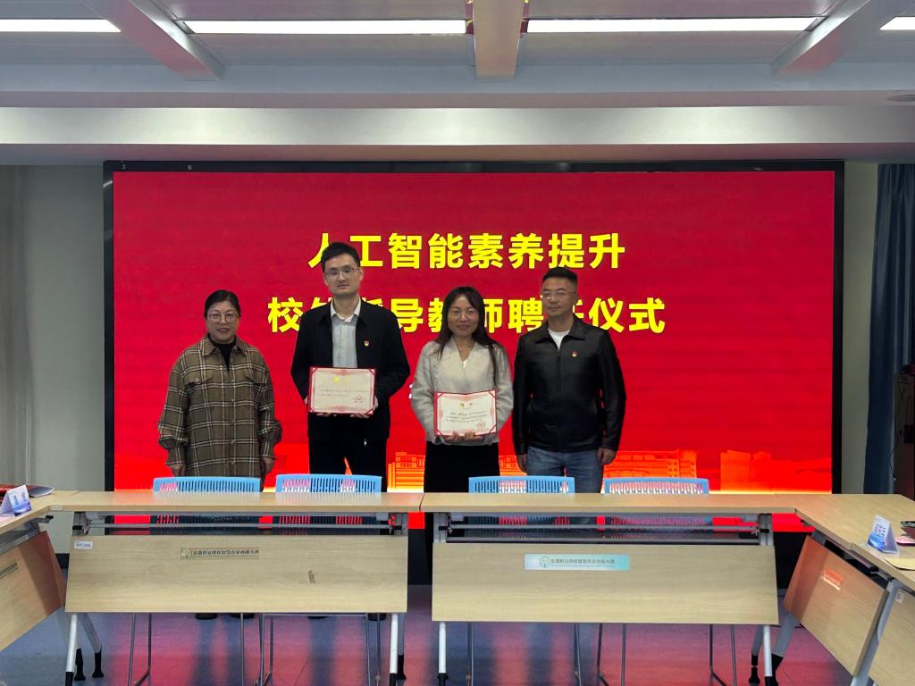 第二阶段是校外指导教师聘任仪式,实验小学、文昌中学两校校长分别向信息工程学院陆红飞和潘维两位教师颁发人工智能校外辅导老师证书。