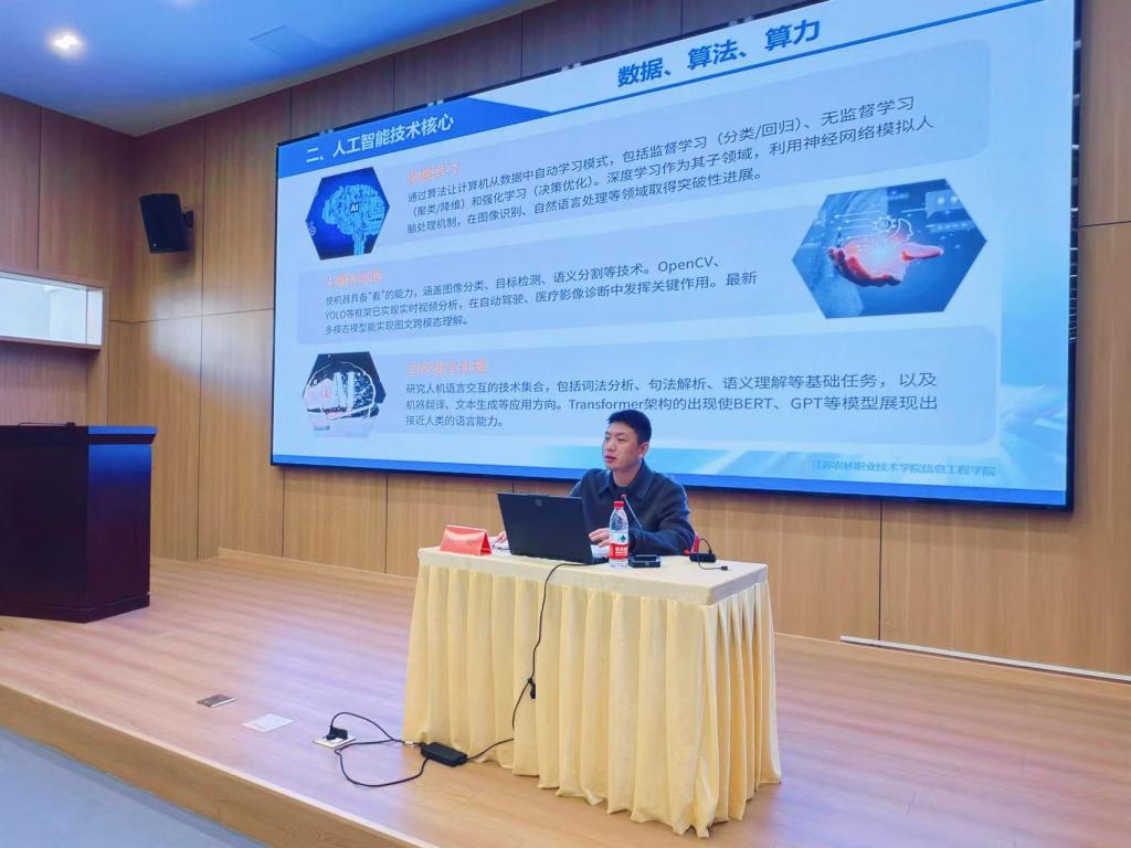 为促进校际交流,传播人工智能前沿知识,11月14日下午,信息工程学院党总支组织党员教师团队赴南京钟山职业技术学院,举办了一场题为“AI时代,触手可及:开启你的智能未来”的专题讲座。