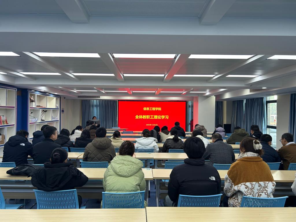 12月3日下午,信息工程学院党总支在工科楼B103召开全体教职工理论学习会议。会议按照12月份学习安排完成集中学习,并围绕立德树人根本任务和“为党育人、为国育才”使命,结合人才培育、专业建设、课程改革等如何改革一体推进教育科技人才发展,以更高质量办学和更好实际作为服务乡村振兴战略和农业强国、教育强国建设进行研讨。会议最后要求,全体教职工根据学校11月份自学内容,完成本次会议未学习的其他学习内容。