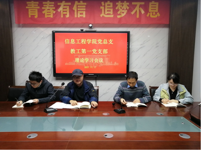 2021年11月17日下午,信息工程学院党总支教工第一党支部在工科楼B404组织召开党员学习会议,会议由支部书记周伟同志主持。