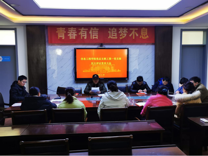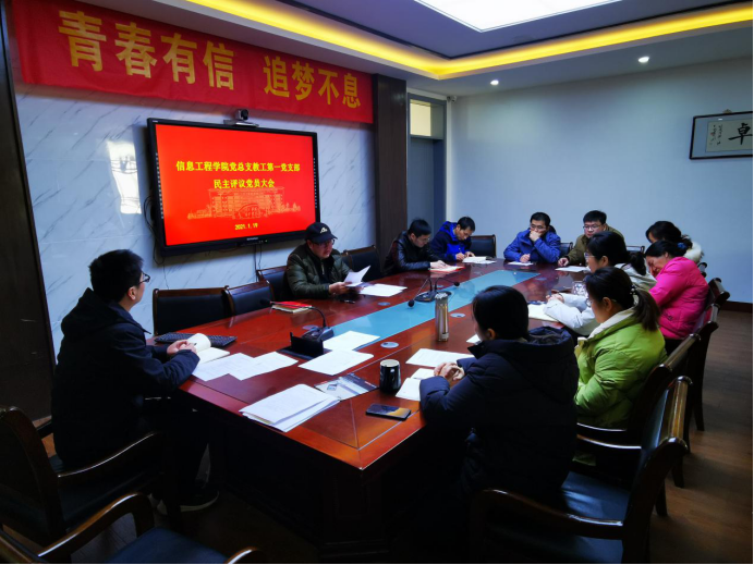 2021年1月19日下午,信息工程学院党总支教工第一党支部全体支部党员在工科楼B404召开民主评议党员大会。